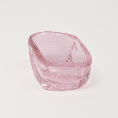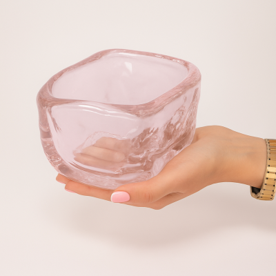 وعاء زجاجي مستطيل متموّج الحافة صغير - وردي