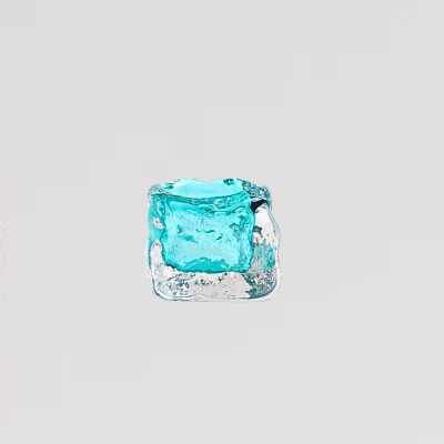وعاء زجاجي مربع بحافة مموجة (صغير) - تركوازي