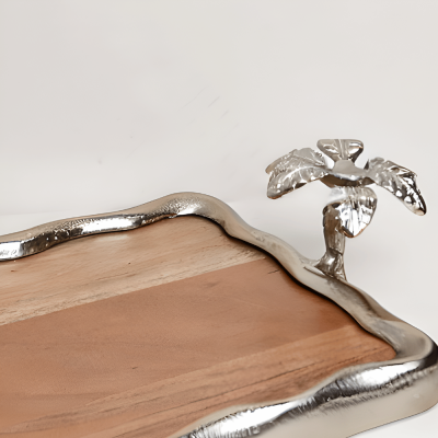 صينية خشب النخيل - فضي