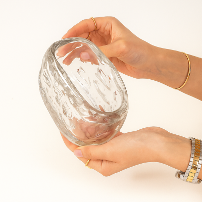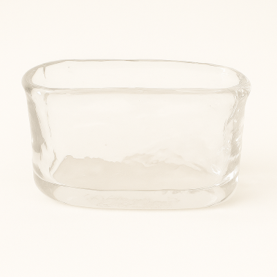 وعاء زجاجي بيضاوي بحواف مموجة صغير - أبيض
