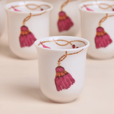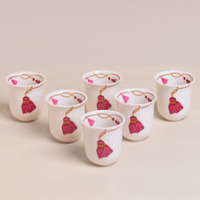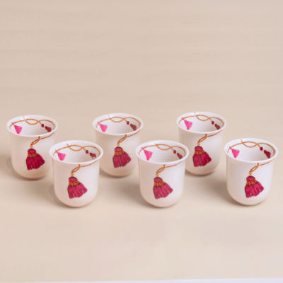 طقم فناجين قهوة عربية طويلة بتصميم كراكش - وردي
